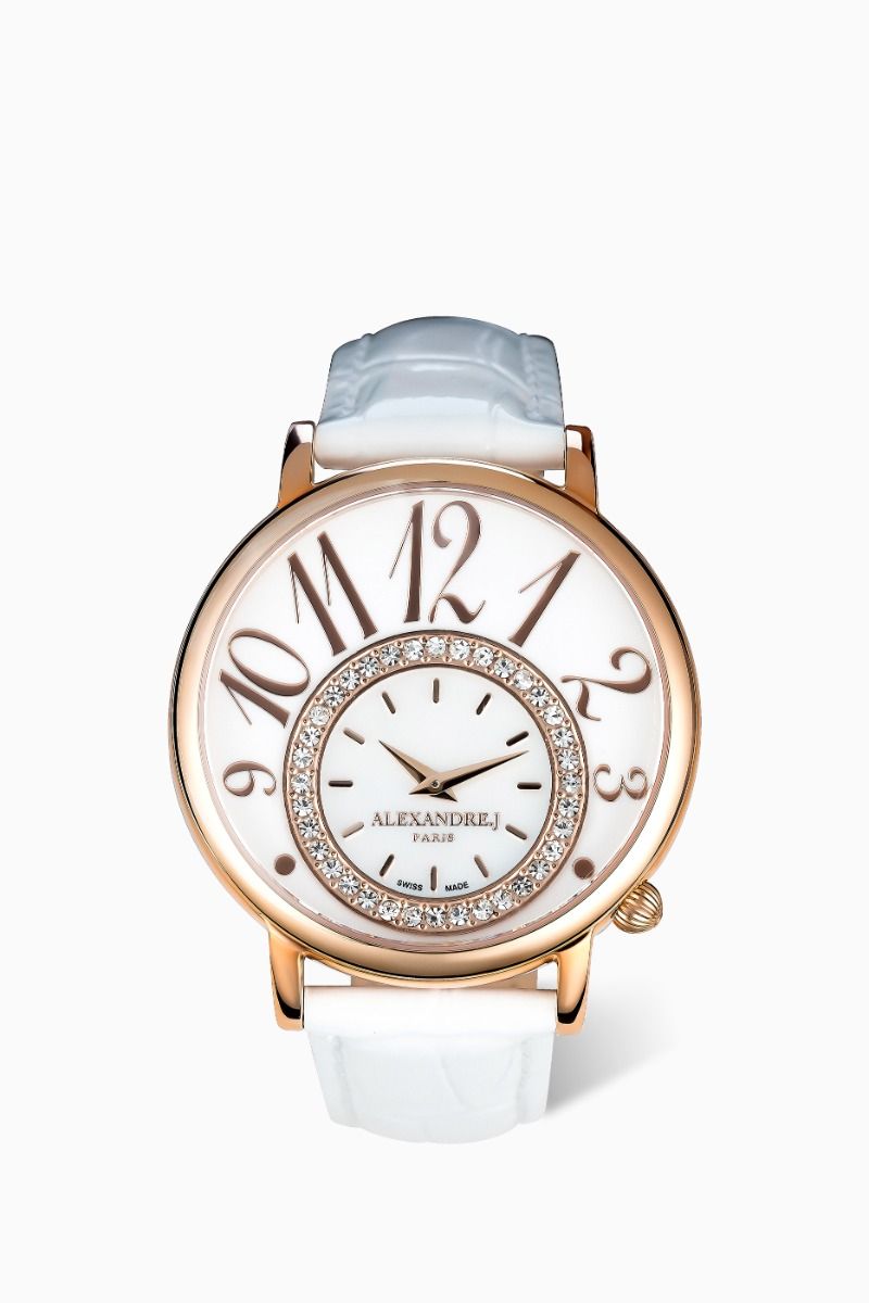 The ACTUAL Rose Gold watch completes your everyday outfits. The Swarovski stones light up the dial and highlight the numbers. The white leather strap completes this classic and elegant feminine model.
