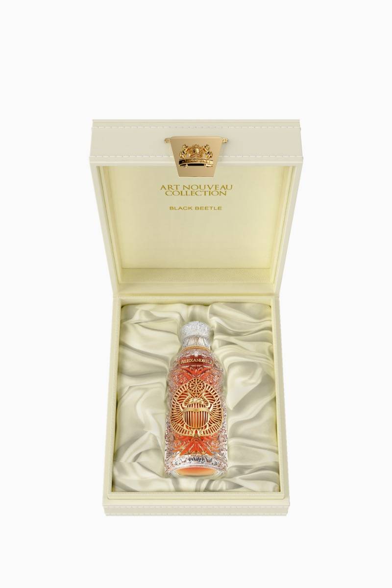 Ravel in olfactive evocation inspired by the natural world of art and architecture. The opulent hand-blown bottles are made even more precious featuring patterns gilded with fine gold decadently packaged in lavish silk and leather... a nod to the period’s significant impact on design and decorative art. Celebrate the hidden fantasies of the Art Nouveau jewelry with Black Beetle… announce your arrival and prolong your departure with an unassuming scent ... that will linger in hearts, minds (and noses) long after you have left the room.