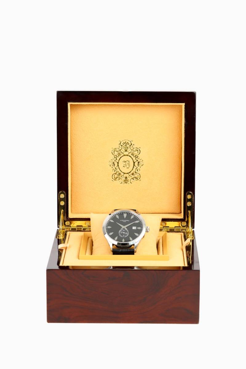 The CLASSICO Silver watch is a quartz model with more complex specifications than a mechanical model and a sapphire crystal. The black dial plays the card of sobriety and matches all your everyday outfits as a classic. EAN Code: 370 127 860 0110 Color: Silver Reference: AJ8003QS Material & Finishing: Stainless Steel Strap: Leather Lens: Sapphire Glass Mechanism: Quartz RONDA 6004.D