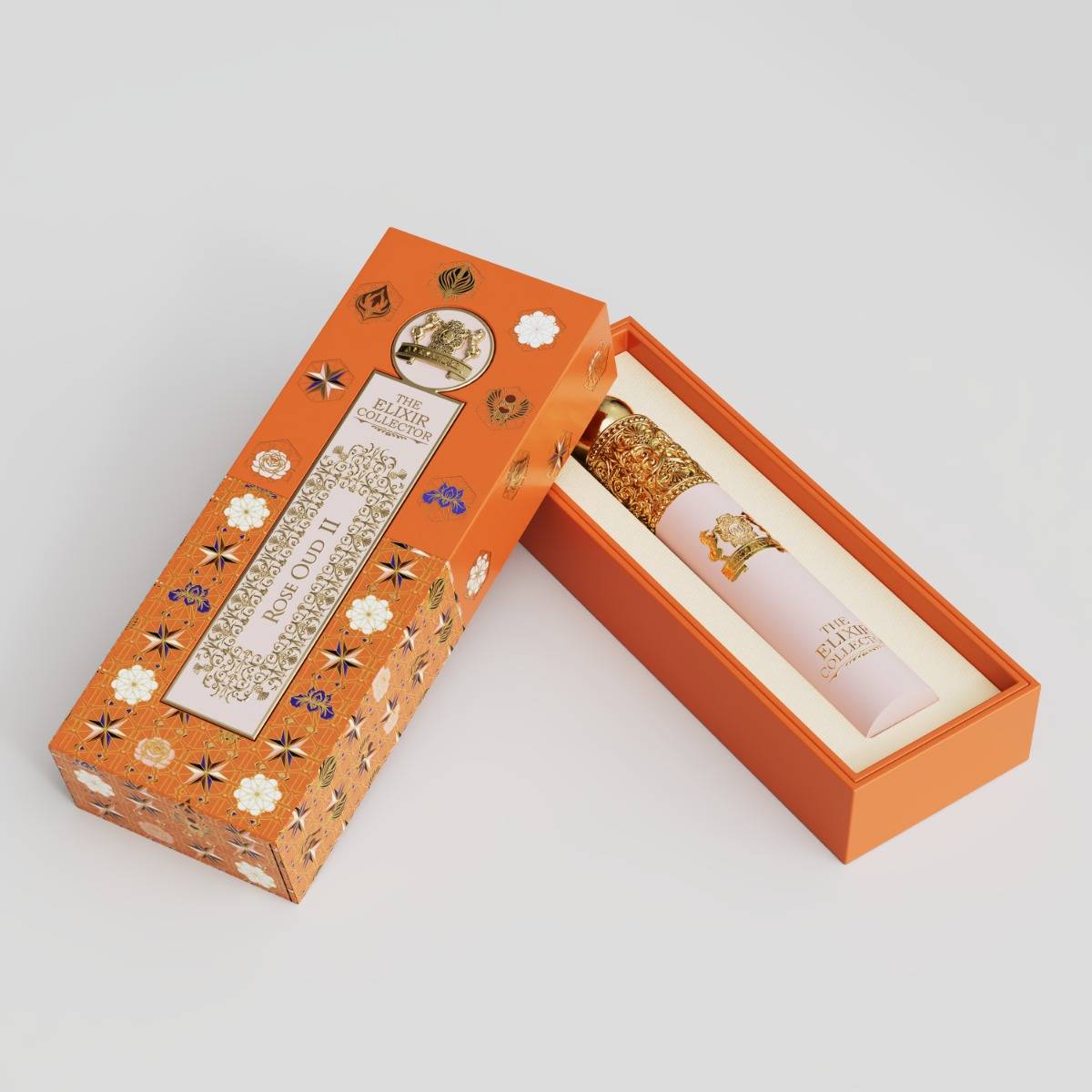 THE ELIXIR COLLECTOR | Rose Oud II (10ml) Embrace a world of floral opulence with the Rose Oud II Elixir, a concentrated 10ml Eau de Parfum from the prestigious "The Elixir Collector" series. This travel-sized masterpiece is designed for the modern connoisseur who values the perfect balance between regal florals and deep, resinous woods. Product Details: Fragrance: Rose Oud II. Volume: 10ml Eau de Parfum. Presentation: A delicate, soft pink ...