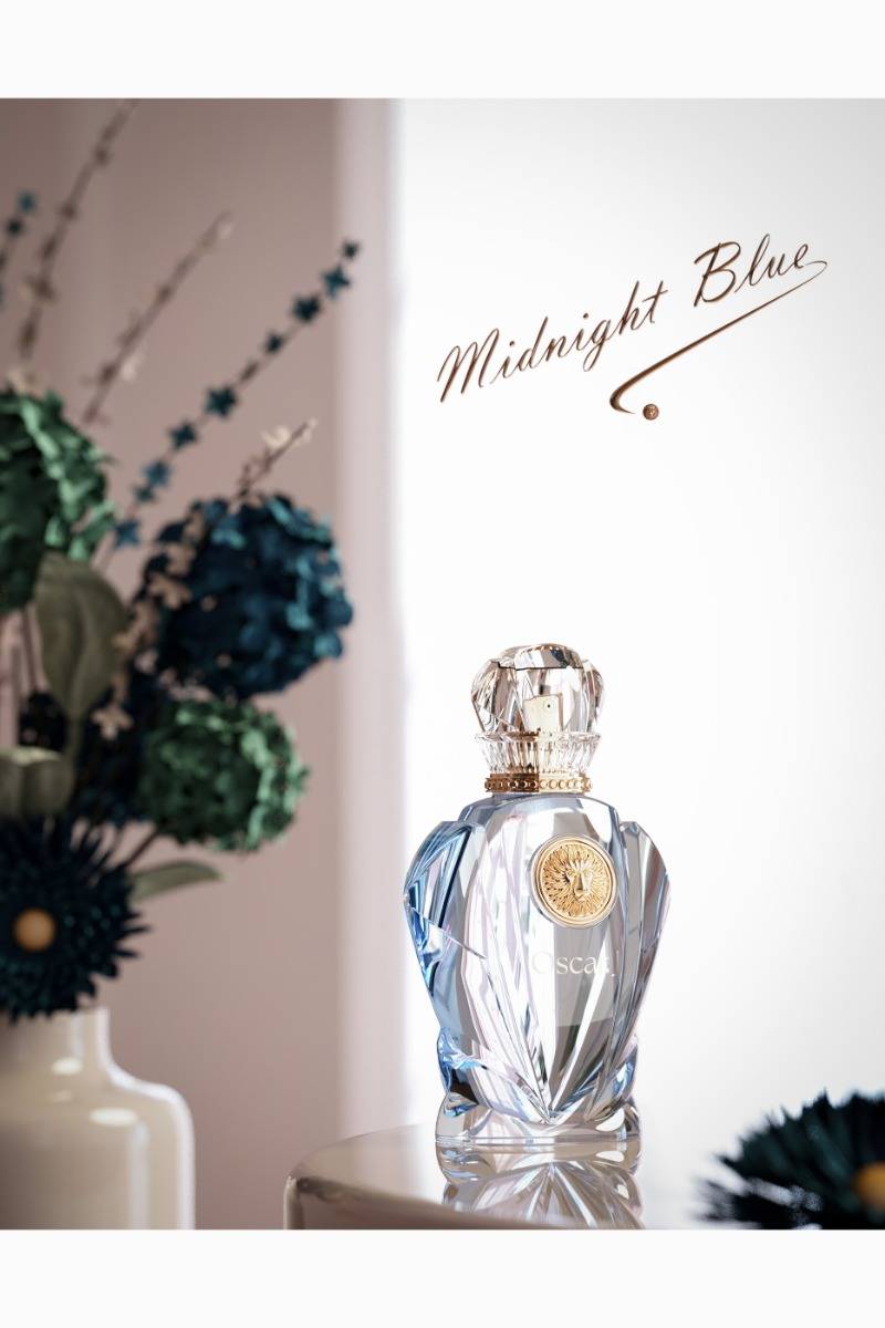 Midnight Blue captures the essence of a serene night, with floral notes and peach tree blossoms blending seamlessly with bergamot. The aqueous accord and apple tree blossoms add a fresh touch, while the mineral amber provides a lasting, calming base.