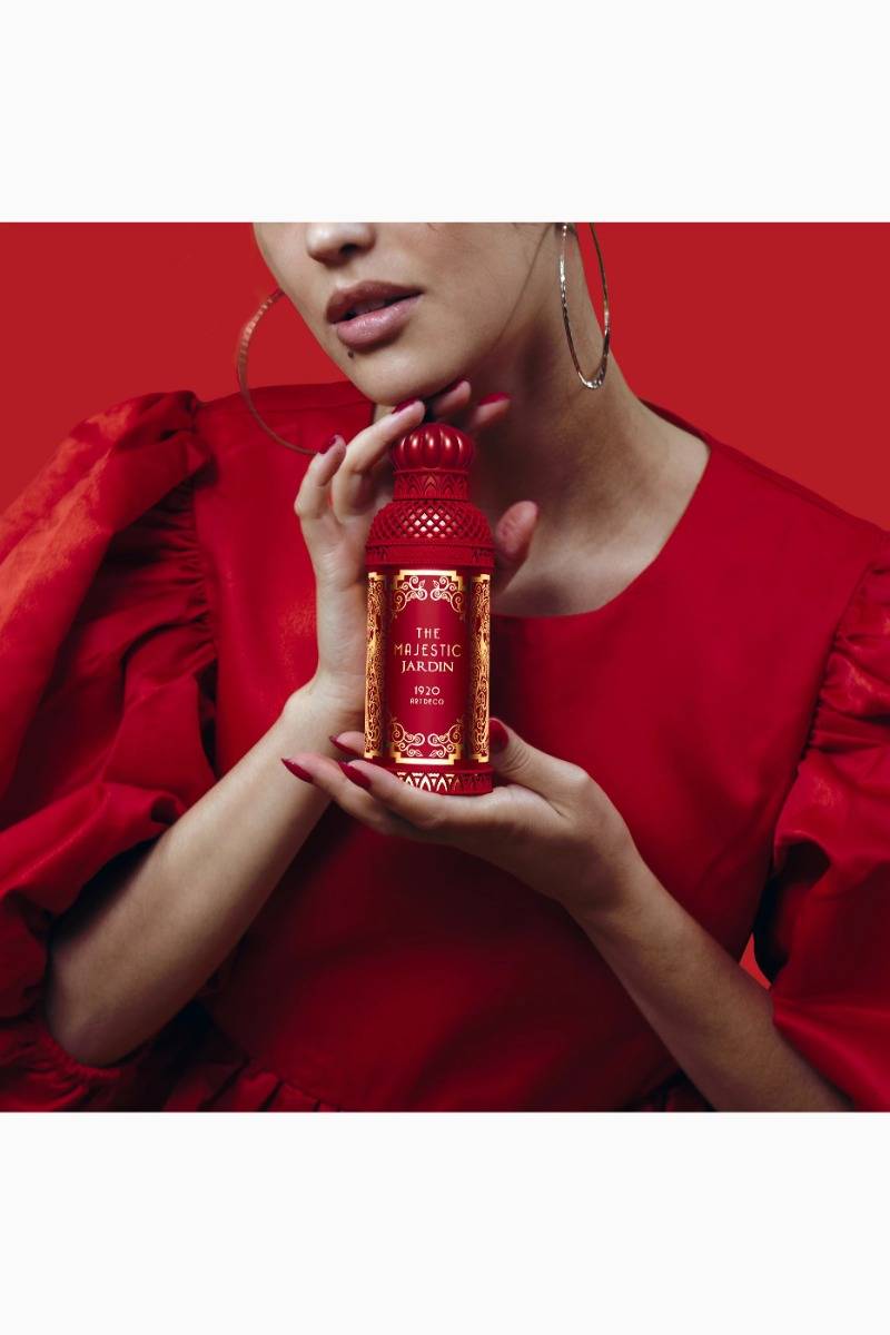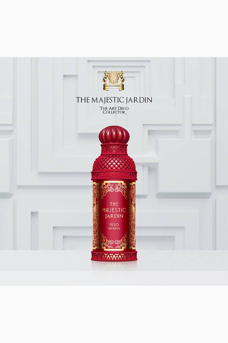 The Majestic Jardin Eau de Parfum is a spicy oriental fragrance housed in a 100ml red bottle, inspired by Alexandre J’s exploration of the East and Asia. It evokes exoticism, with notes of almond, cherry, black pepper, and vanilla, capturing the essence of vibrant parties in cedar-lined gardens and the mystique of cherry blossoms and hookah smoke.