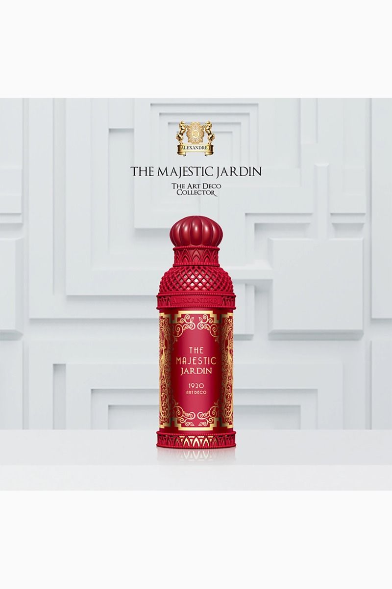 The Majestic Jardin Eau de Parfum is a spicy oriental fragrance housed in a 100ml red bottle, inspired by Alexandre J’s exploration of the East and Asia. It evokes exoticism, with notes of almond, cherry, black pepper, and vanilla, capturing the essence of vibrant parties in cedar-lined gardens and the mystique of cherry blossoms and hookah smoke.